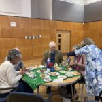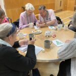 At the end of June we cautiously resumed face-to-face meetings, observing Scottish Government safety guidelines. What a joy to meet each other again. We enjoyed chair exercise sessions with Chris, another visit to Dunbar Community Woodlands and The Backlands; Afternoon Tea at Winterfield Golf Club; Fundraising Afternoon Tea Parties for both Macmillan and Maggie’s Centre, Edinburgh; a creative writing session with Lorna Hill; card-making sessions with Beth; celebrated Book Week Scotland with poet, Stuart Patterson; Christmas Decoration making with Marion Seath of ‘Fingers & Thumbs’ and ended the year with a sumptuous Christmas Lunch at the Winterfield. Oh what fun we had!!
